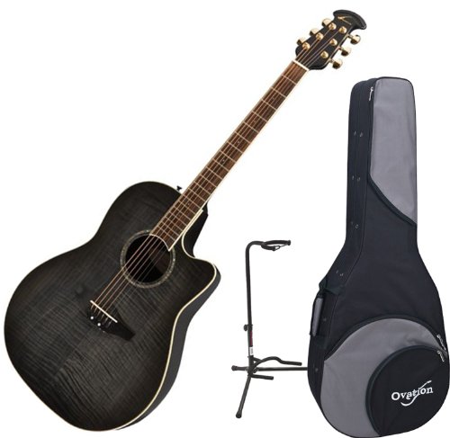 $$ Get a Best Price Ovation CC24-TBBY Celebrity Mid-Depth Flamed Maple A/E Guitar (Trans Black Burst Flame) w/Zero Gravity Case and Stand
