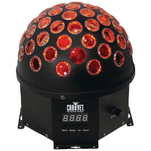 The Chauvet Hemisphere 5 is a room-covering centerpiece with dozens of clear lenses projecting RGBWA LED beams in all directionsjust like a multi-colored, rotating mirror ball. The LEDs can be individually controlled or the unit can run on built-in sound activated and automated programs, or 4-channel DMX control. Up to 10 units can be linked together for shorter cable runs and time savings. Plus, it has no duty cycle and can run all night.
