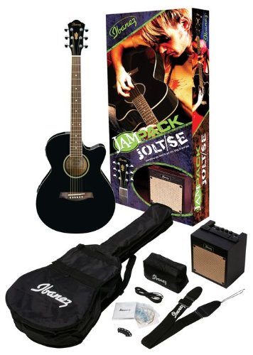 The Ibanez JamPack Jolt gives you a complete plug 'n' play setup, starting with the Ibanez AEG5EBK acoustic-electric cutaway guitar with on-board preamp and tuner, the ACA15 Amp, and all the guitar accessories that you need.The guitar's AEQ200T 2-band EQ is optimized for use with Ibanez under-saddle pickups. The on-board tuner with 7-segment LED lets you get in tune fast. The JamPack also includes a padded gig bag, guitar cable, strap, instructional DVD, extra strings and picks.