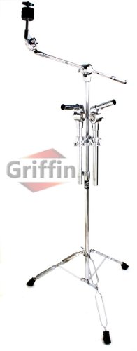 Double Tom Drum Stand with Cymbal Mount Arm Boom Duel Percussion Hardware Griffin Info