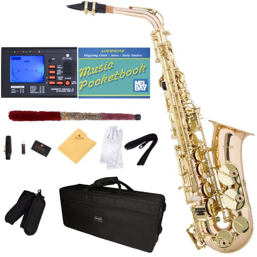 Mendini by Cecilio MAS-30L+92D+PB Rose Gold Brass E Flat Intermediate to Advanced Alto Saxophone with Tuner, Case, Mouthpiece, 10 Reeds and More Details